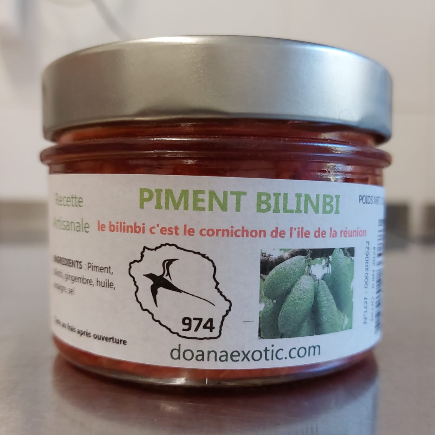 Piment contenant du Bilinbi (Cornichon de la Réunion).