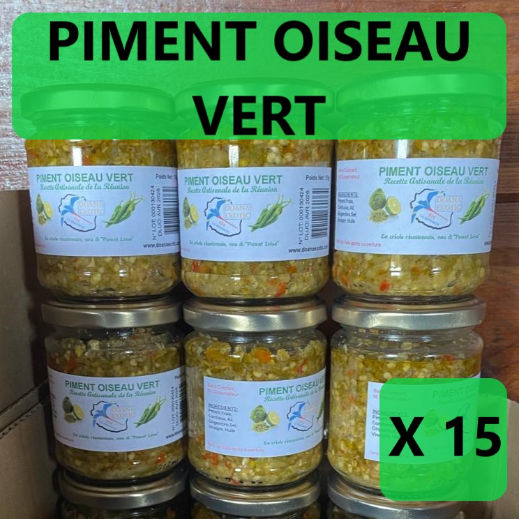 Colis contenant 15 Bocaux de Piment Oiseau Vert 170g